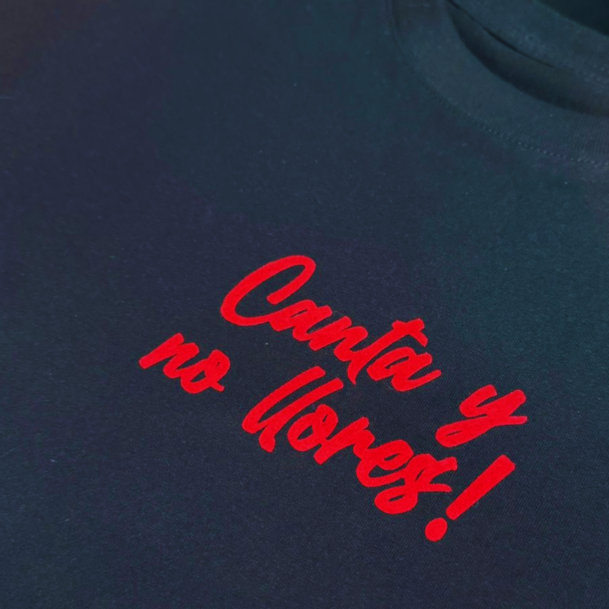 Estampado al frente con textura FLOCK/TERCIOPELO y en espalda con estampado y aplicación FLOCK encima. Una mezcla increíble de texturas.